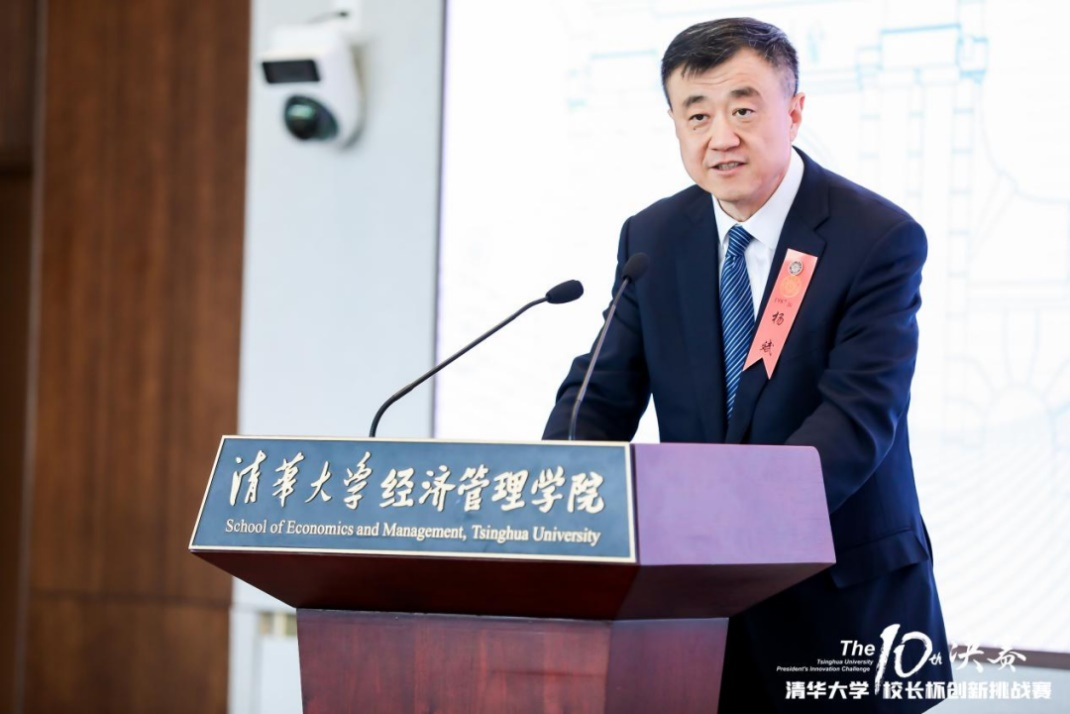 清华大学经济管理学院院长白重恩教授代表清华经管学院以及主办方清华x-lab致辞。白教授谈到,清华x-lab将继续坚持做好清华“三创”教育,讲好清华“三创”故事,推进更多项目成长、落地,汇聚更多的创业人才和资源,扎实推动中国高校创新创业教育高质量发展。