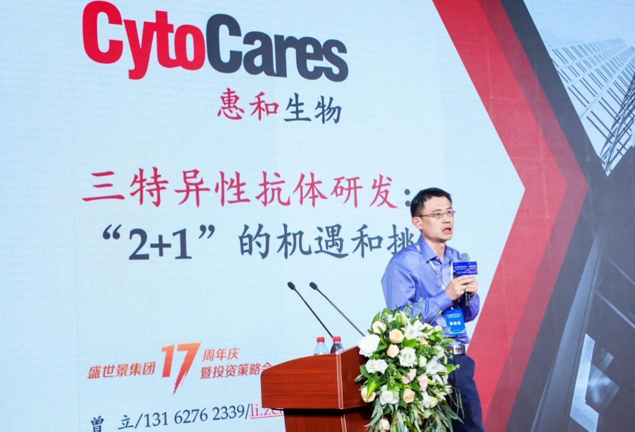 惠和生物创始人曾立博士就《三特异性抗体研发的机遇与挑战》做了专题演讲,以其国内首研三抗产品为例,展示了三抗研发的市场前景及技术难点,突显了三抗在安全性、临床有效性数据较类似靶点双抗的优势,并分析了惠和三抗产品如何创新性地解决同类靶点双抗及CAR-T的临床痛点。此外,曾博士对惠和生物做了系统介绍,公司专注新型肿瘤免疫治疗药物的开发,拥有一流的多特异性抗体药物设计平台,依托平台自有专利技术开发的抗体药物包含一个/多个免疫细胞激活功能域及肿瘤识别功能域,可充分活化免疫细胞,并在免疫细胞与肿瘤之间形成靶向衔接。在团队成员的共同努力下,公司参与开发的多项药物已进入临床阶段,首个产品以T细胞为效应细胞的三特异性抗体以“双信号”调控机制活化T细胞,对效应细胞的激活作用更持久,并可诱导T细胞分化成记忆性T细胞,延长药物的作用时间,改善临床给药模式,在针对血液瘤的临床前研究及临床I期研究中表现出显著的药效学作用及良好的安全性。